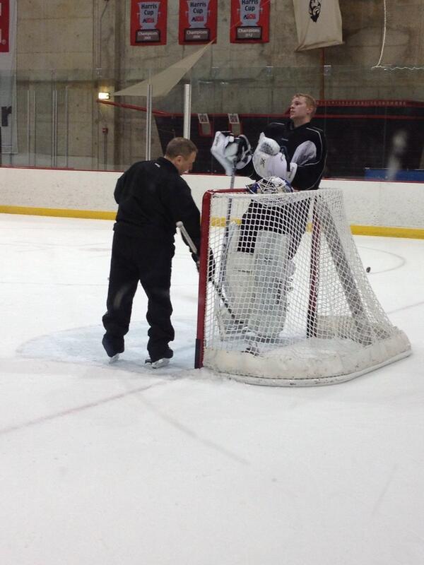 He worked with the entire group (Marek Mazanec, Magnus Hellberg, and Scott Darling) very extensively. He was especially working hard with Hellberg at the tail-end of practice. That work comes with the additional news that follows.